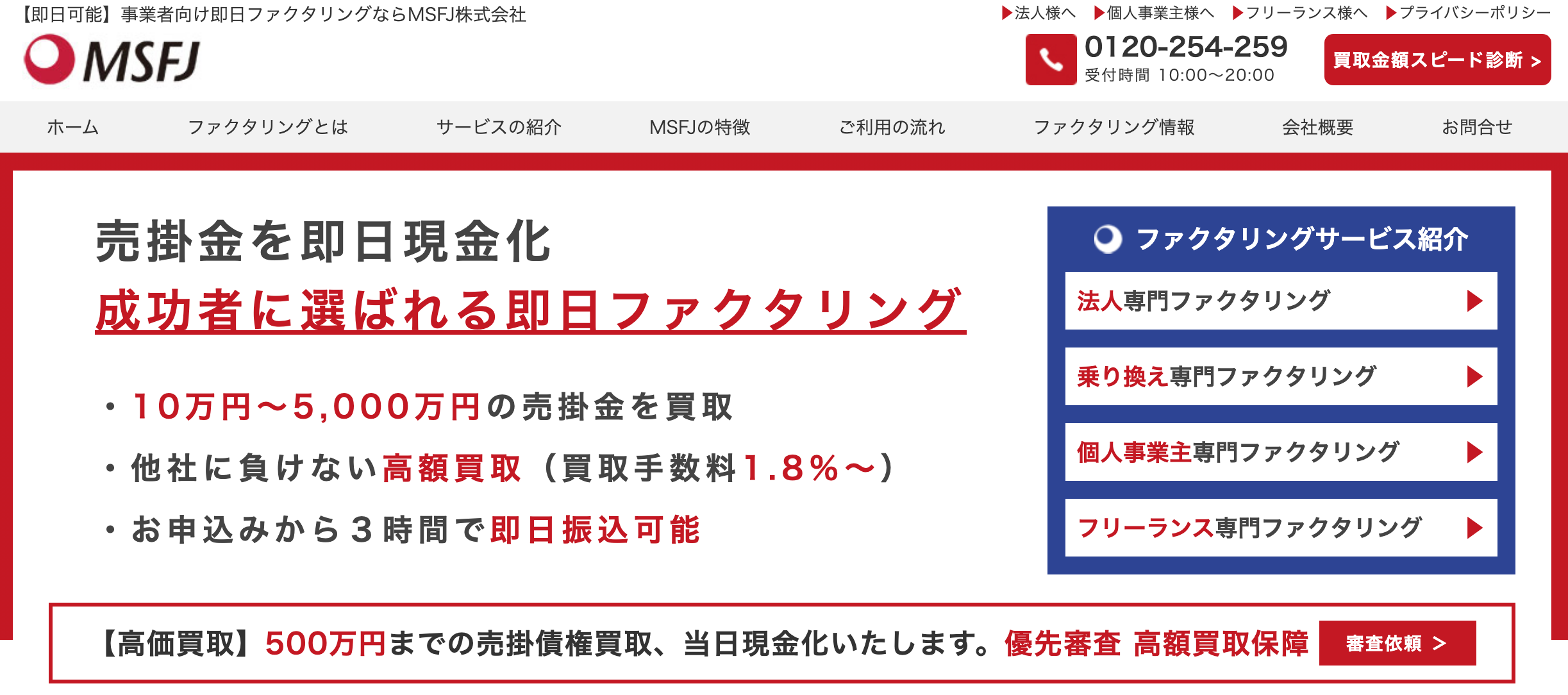 MSFJファクタリングは、最短即日での現金化が可能なファクタリング会社です。